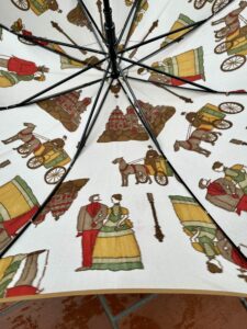 内側にはヨーロッパの紳士淑女や馬車がデザインされた