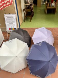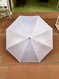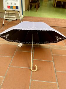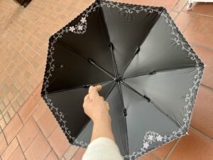 傘の内側は黒ですが白で刺繍をしているので