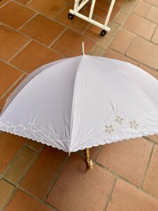 傘のふちに花の刺繍を施し